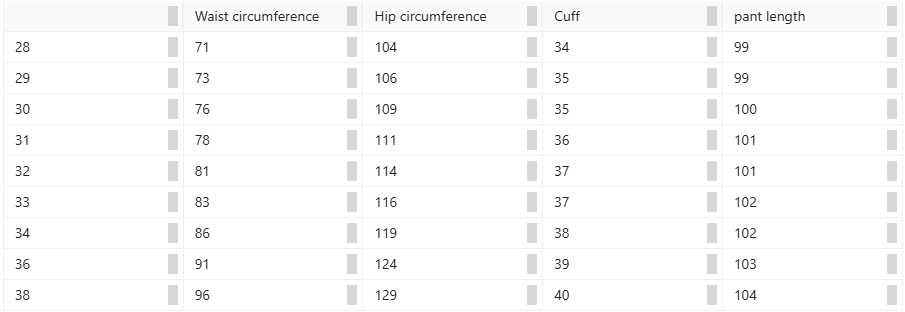 Sizes: 28, 29, 30, 31, 32, 33, 34, 36, 38