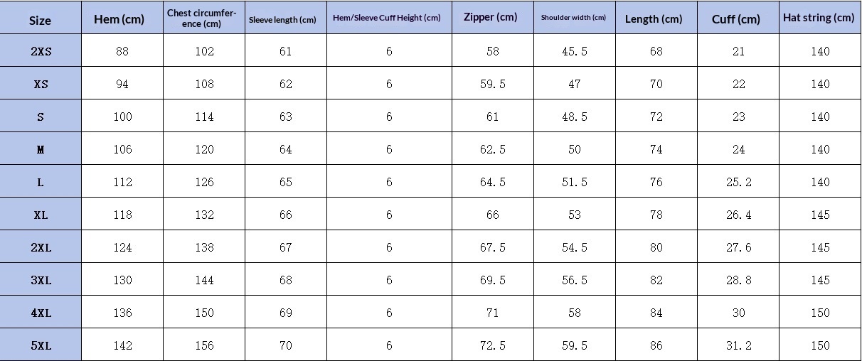 Sizes: XXS, XS, S, M, L, XL, XXL, XXXL, XXXXL