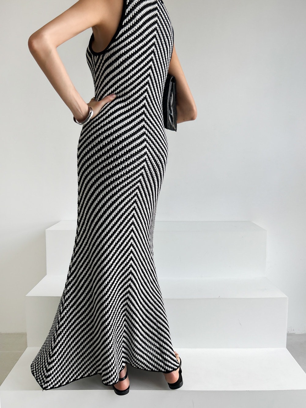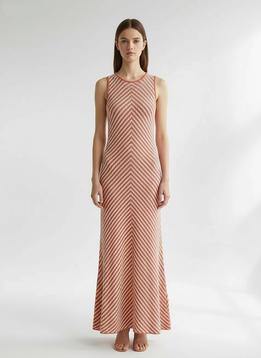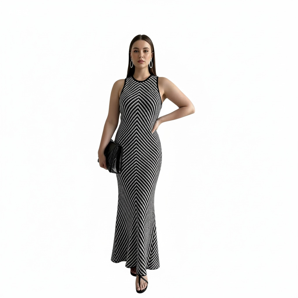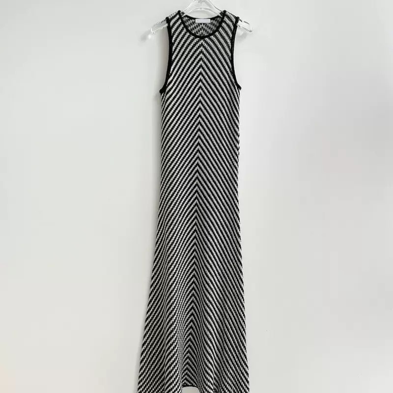 Chic Summer High-End Round Neck Striped Fitted Bodycon Knit Dress