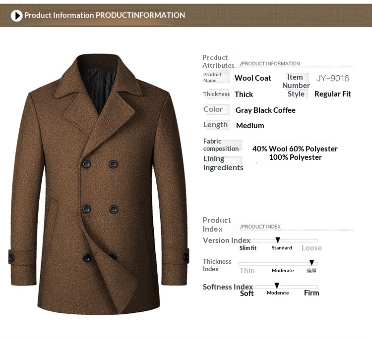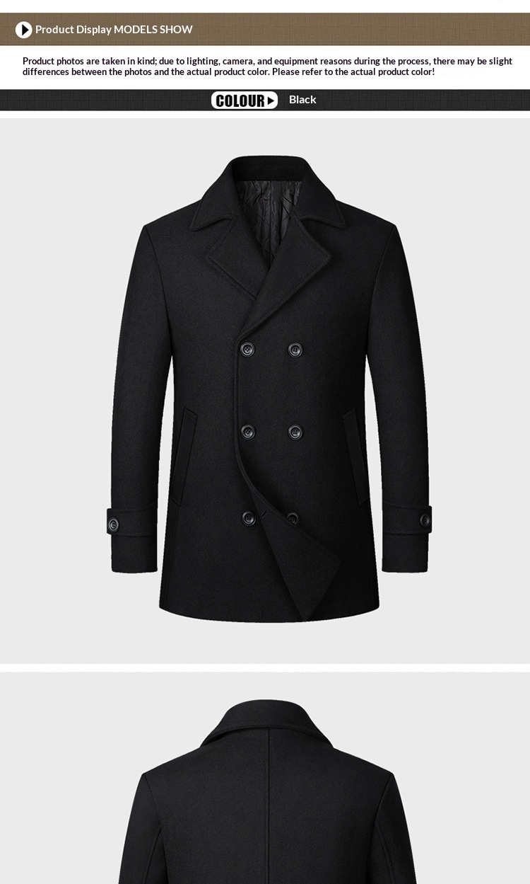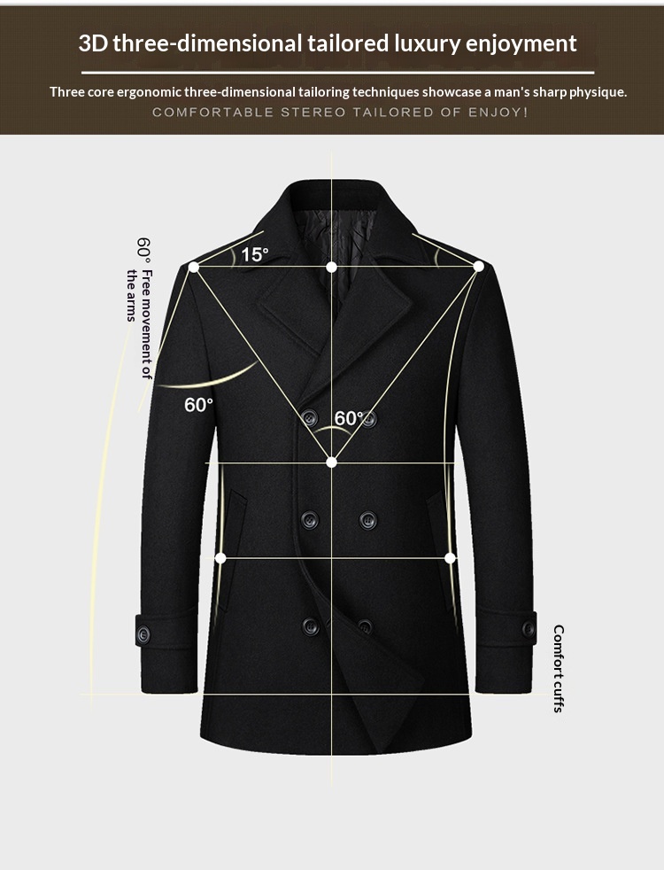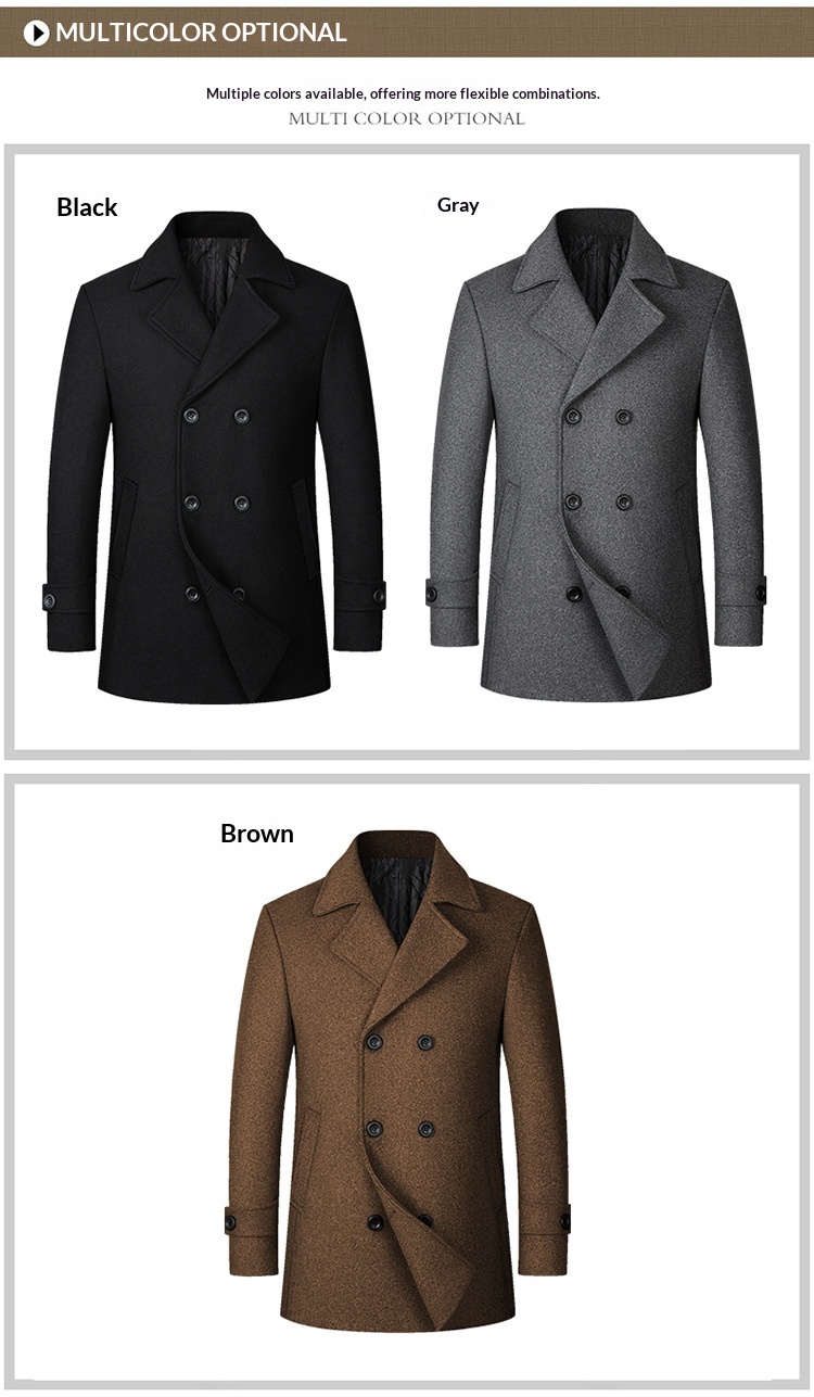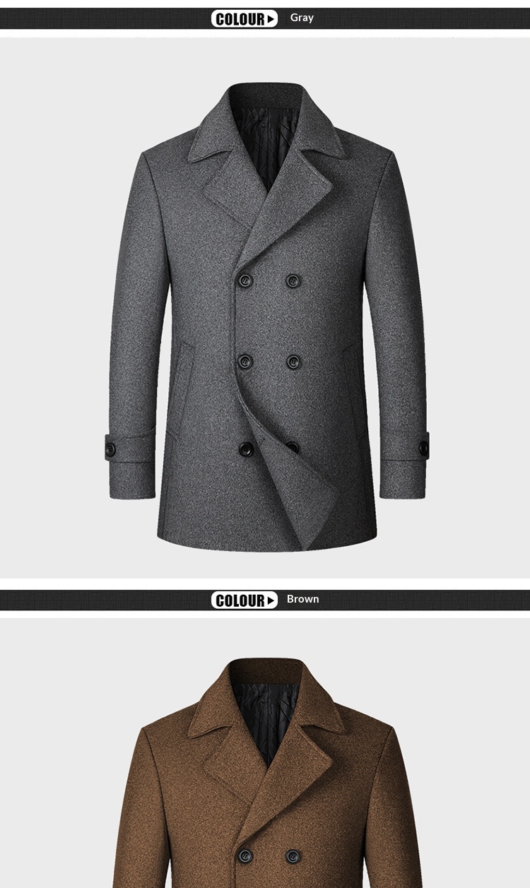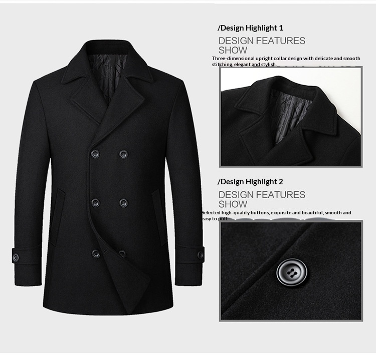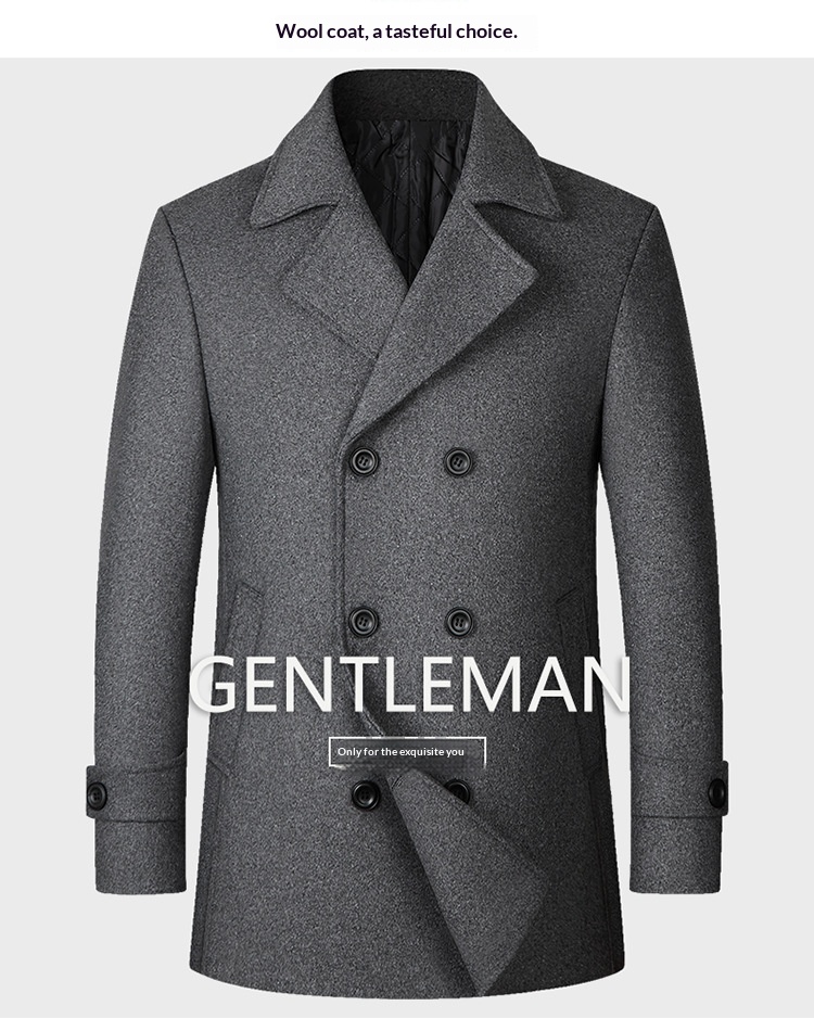 European Size Men's Fashion Double-breasted Lapel Wool Coat