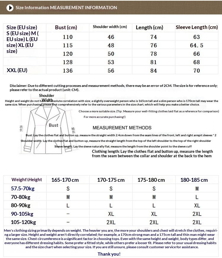 Size: continental size S (chest circumference 110cm), continental size M (chest circumference 115cm), continental size L (chest circumference 120cm), continental size XL (chest circumference 128cm), continental size XXL (chest circumference 136cm)