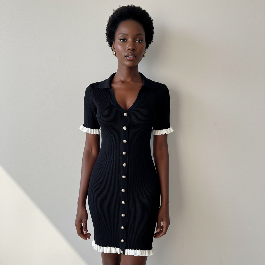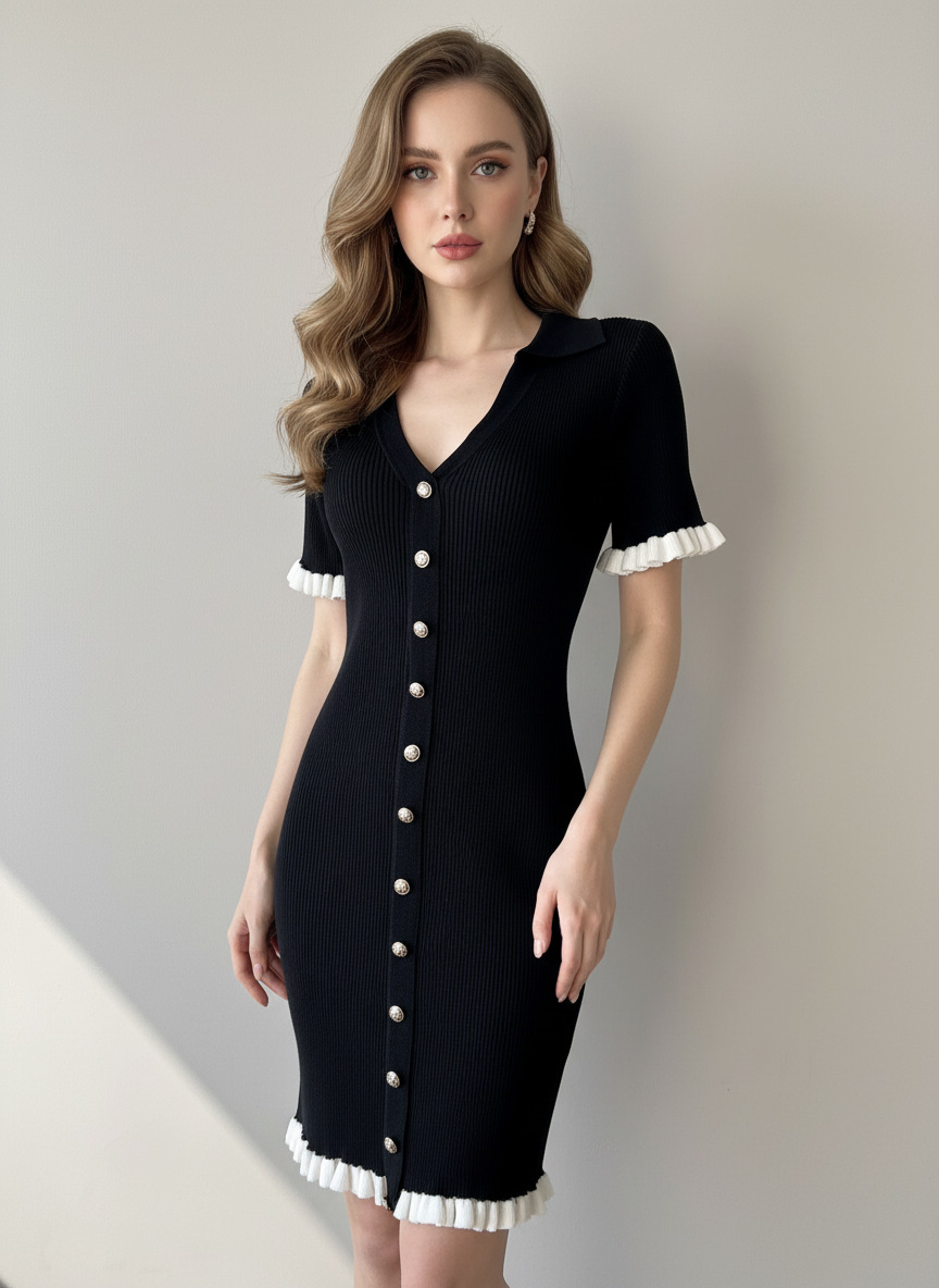 High-Waisted Short Fitted Dress for Women, V-Neck Short Sleeve, Chic and Versatile Mini Dress