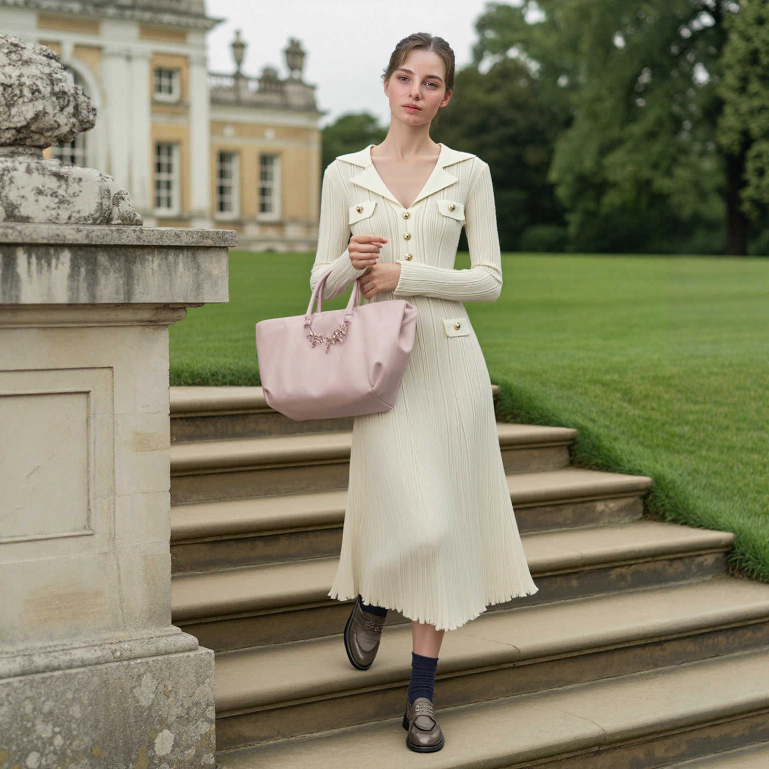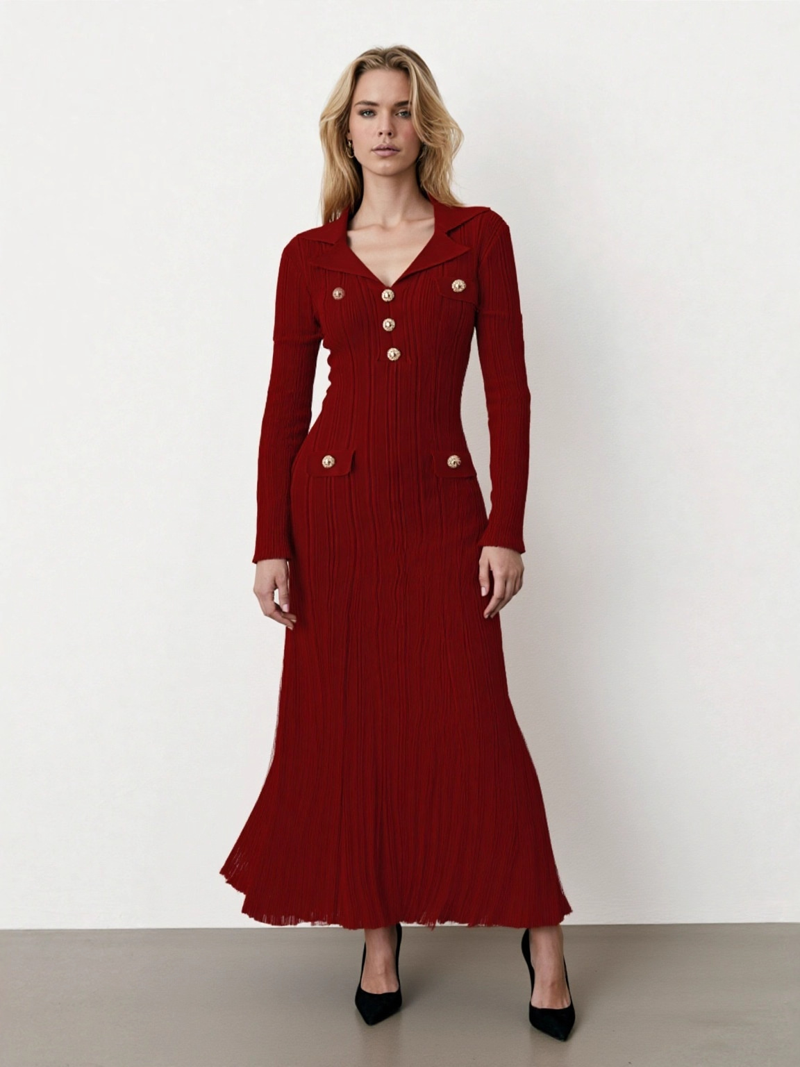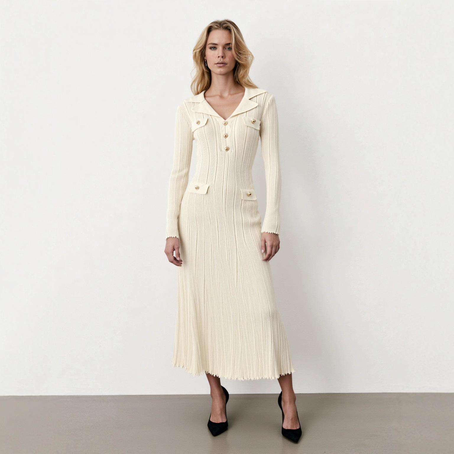 Long Sleeve Knit Dress with Waist-Cinching Design, Autumn/Winter Fashion Dress