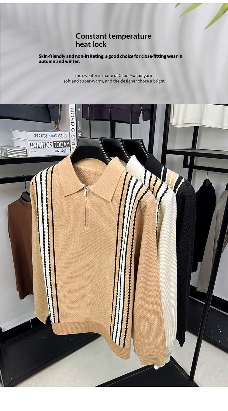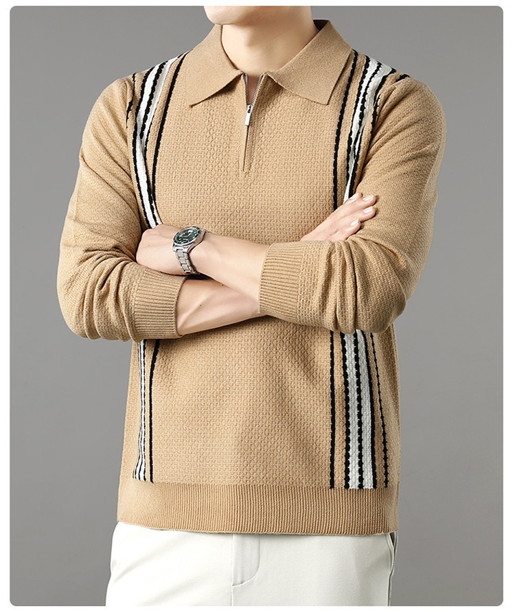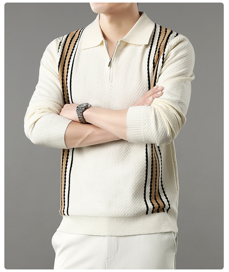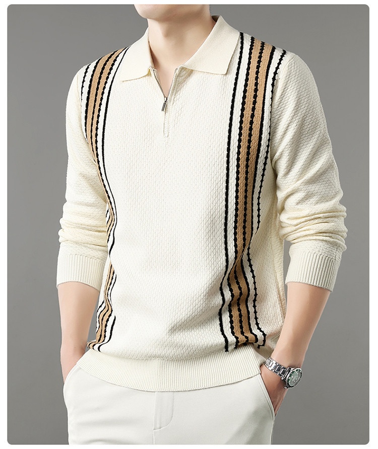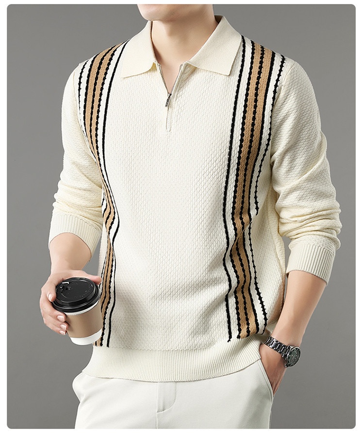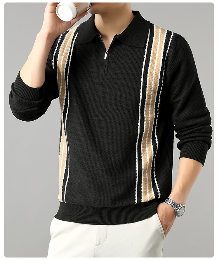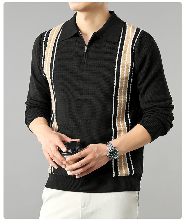 Mens Collar-Style Half-Zip Long-Sleeve Colorblock Knit Sweater