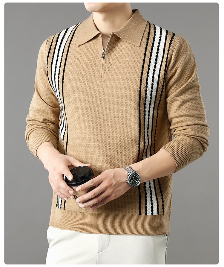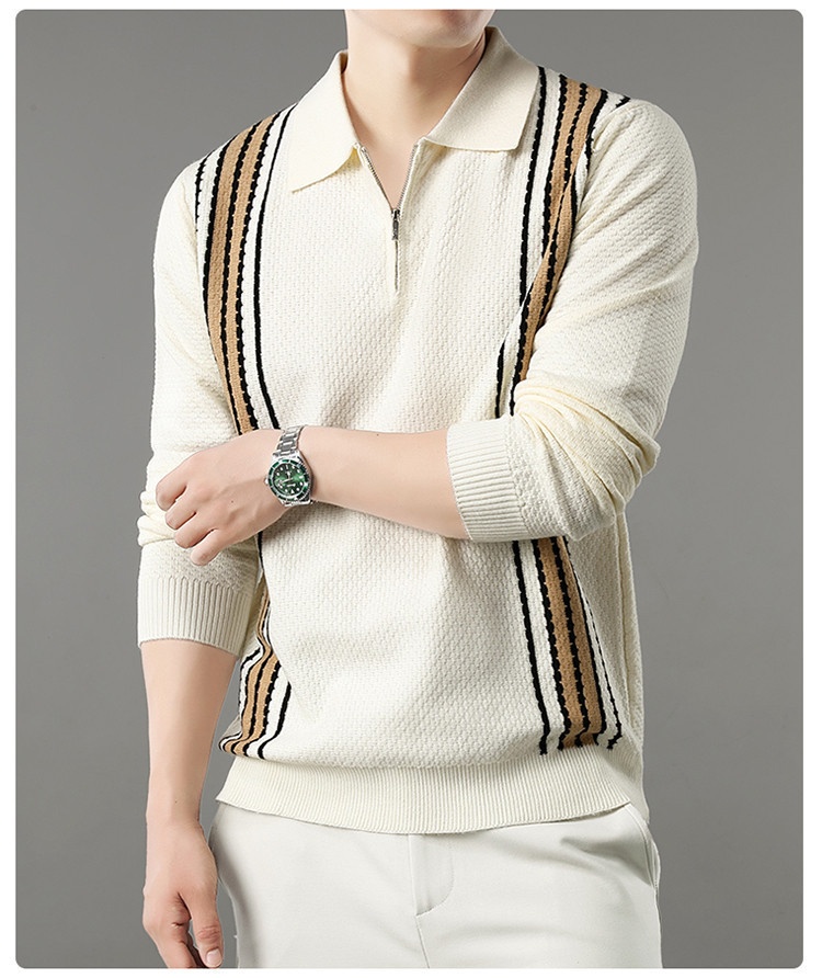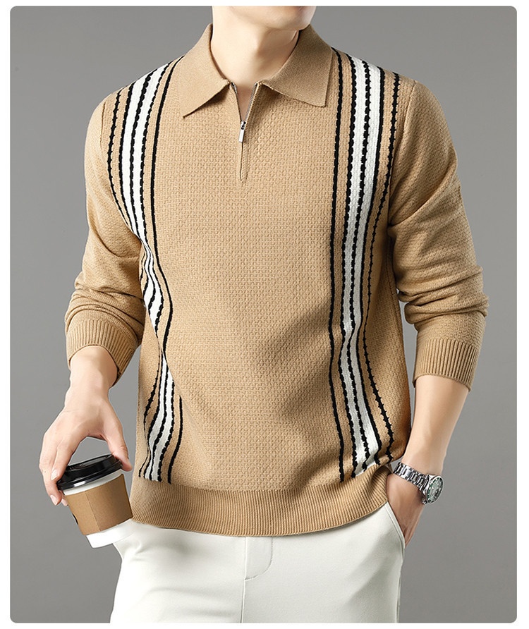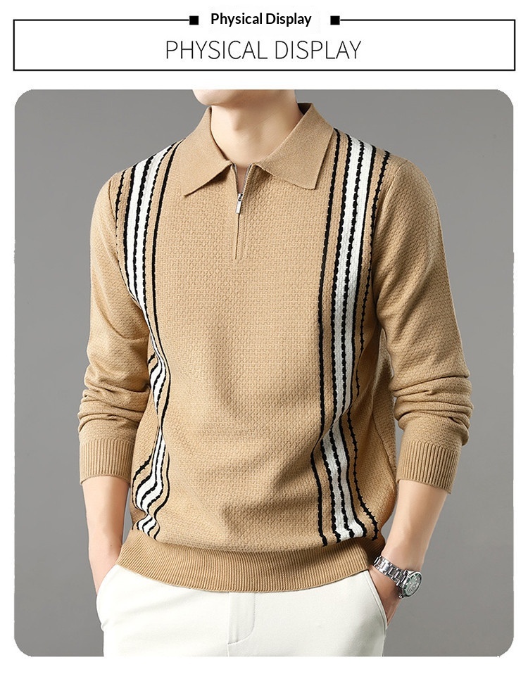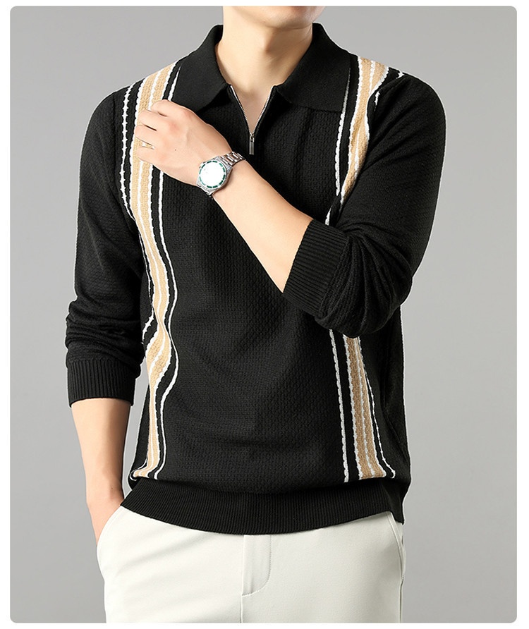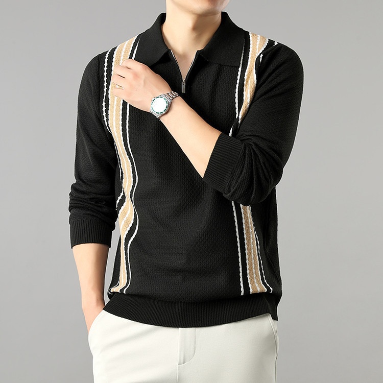 Mens Collar-Style Half-Zip Long-Sleeve Colorblock Knit Sweater