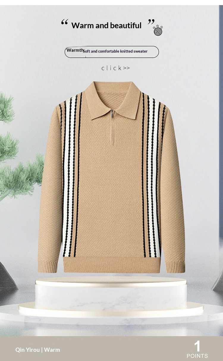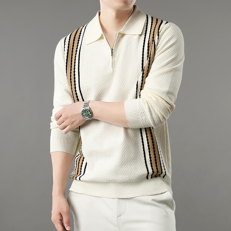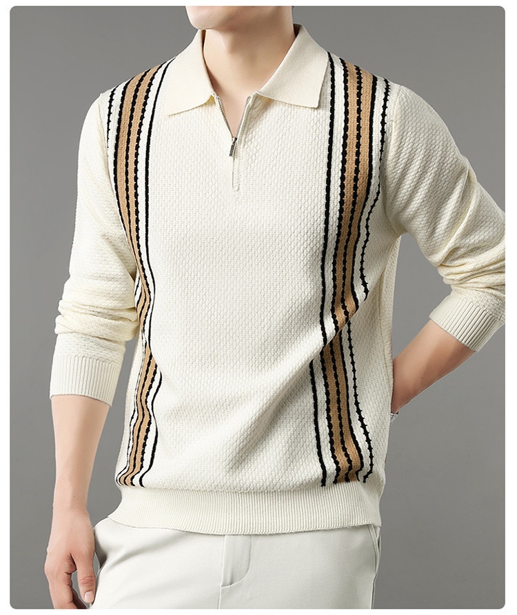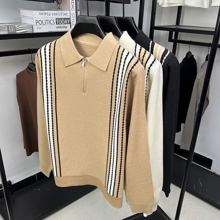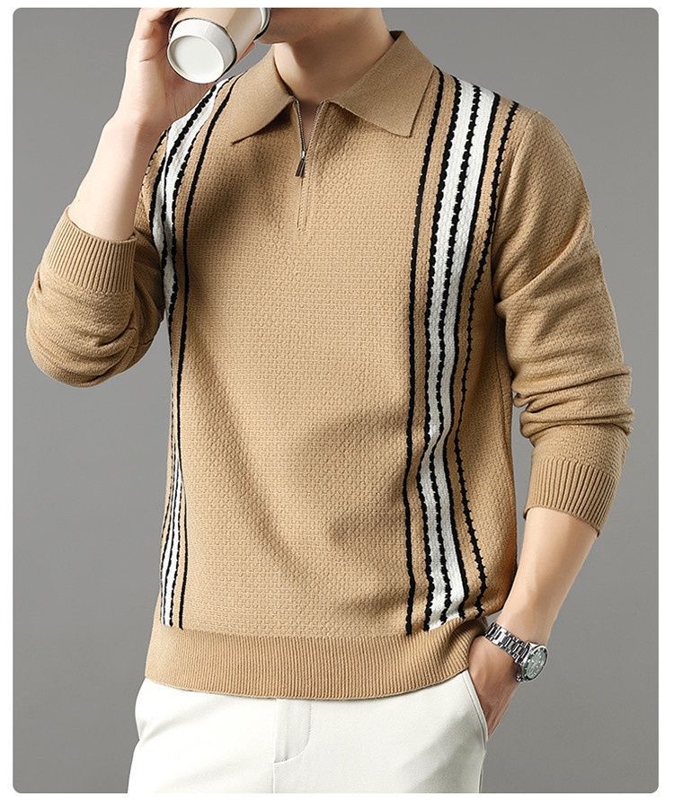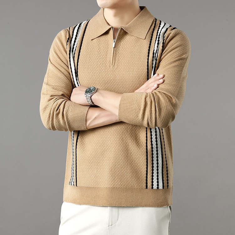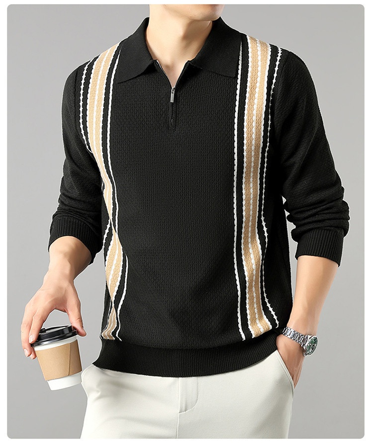 Mens Collar-Style Half-Zip Long-Sleeve Colorblock Knit Sweater