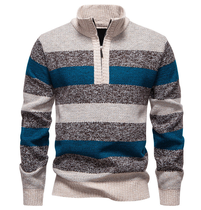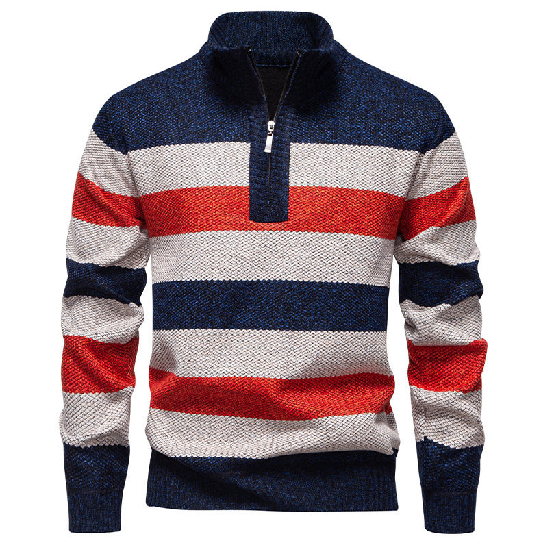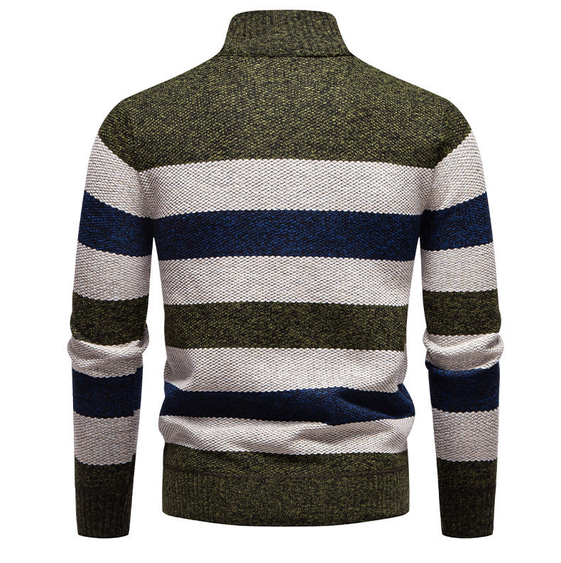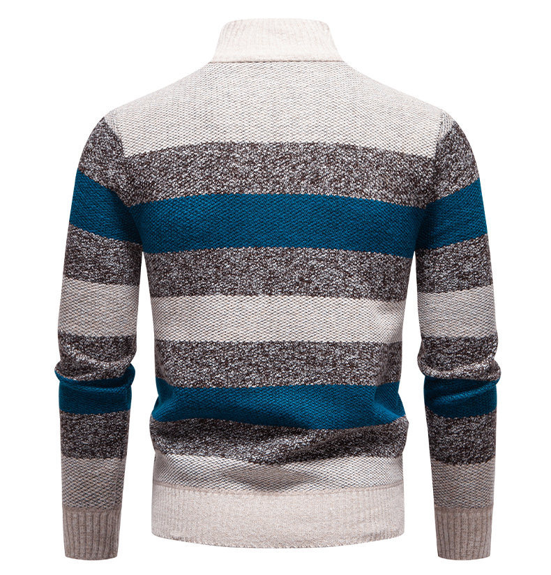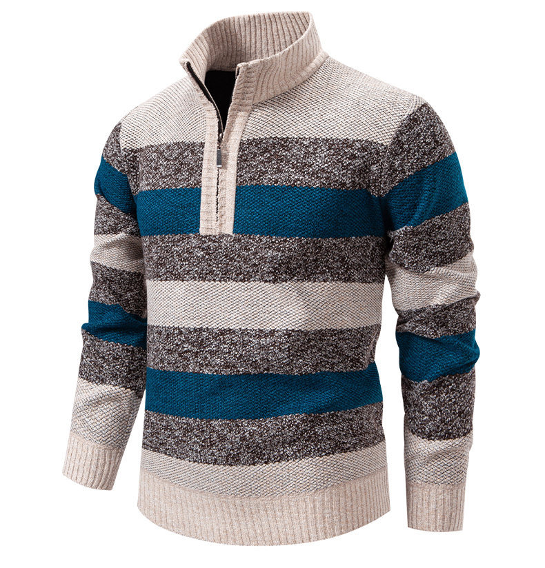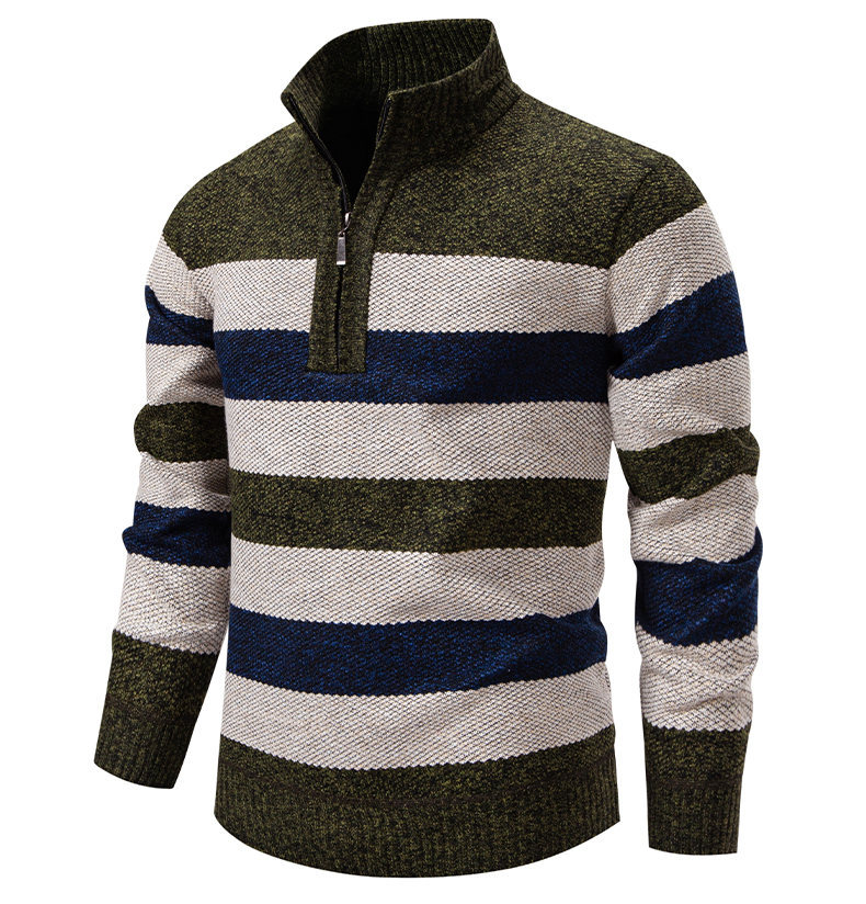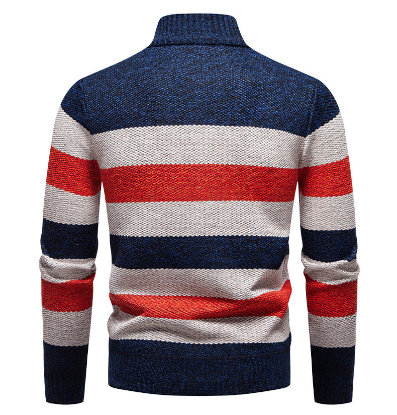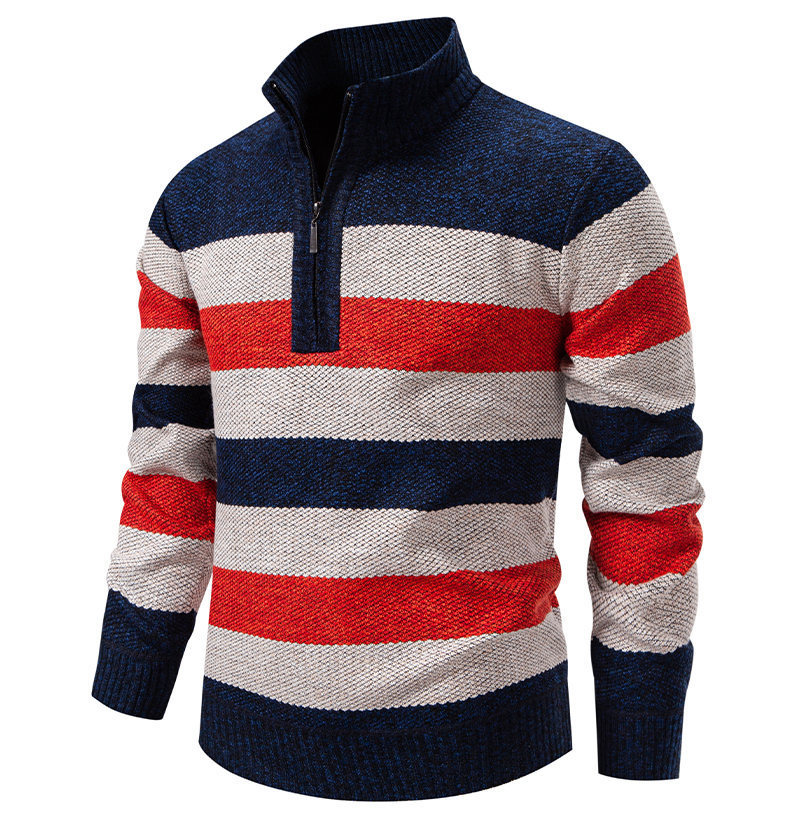 Mens Color-Block Stand-Up Collar Half-Zip Fleece-Lined Thermal Sweater