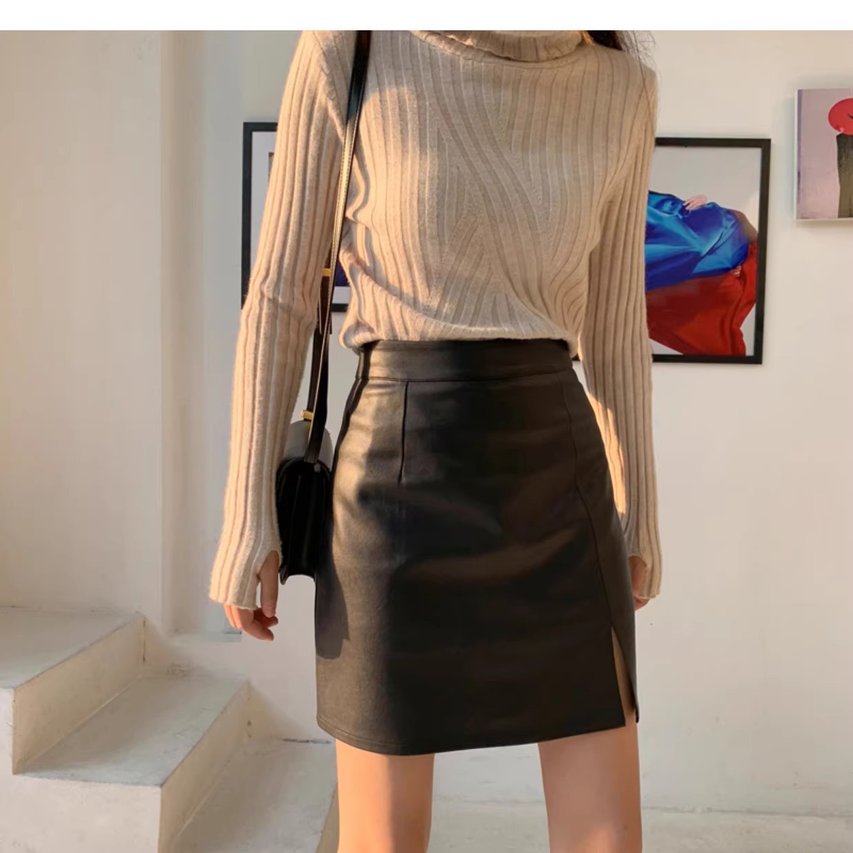 New AutumnWinter High-Waisted Slimming Bodycon Sexy PU Leather Skirt For Women