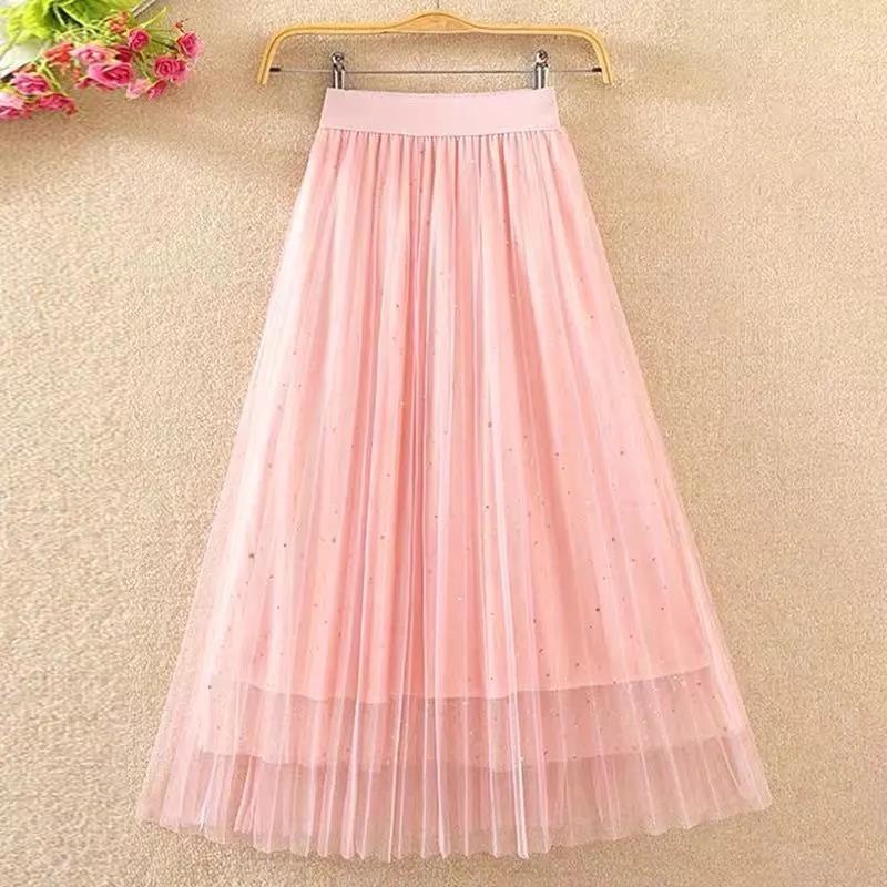 New Versatile High Waisted Slimming Mid Length Mesh Skirt For Women